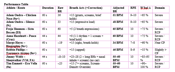 Anderson, A. (2025). The Pranaclimb Methodology: Non-Invasive Tracking of Critical Power and W′bal Modelling in Rock Climbing Using Breathing Rate, RPE, and HRR. SportRxiv. DOI: https://doi.org/10.51224/SRXIV.578
